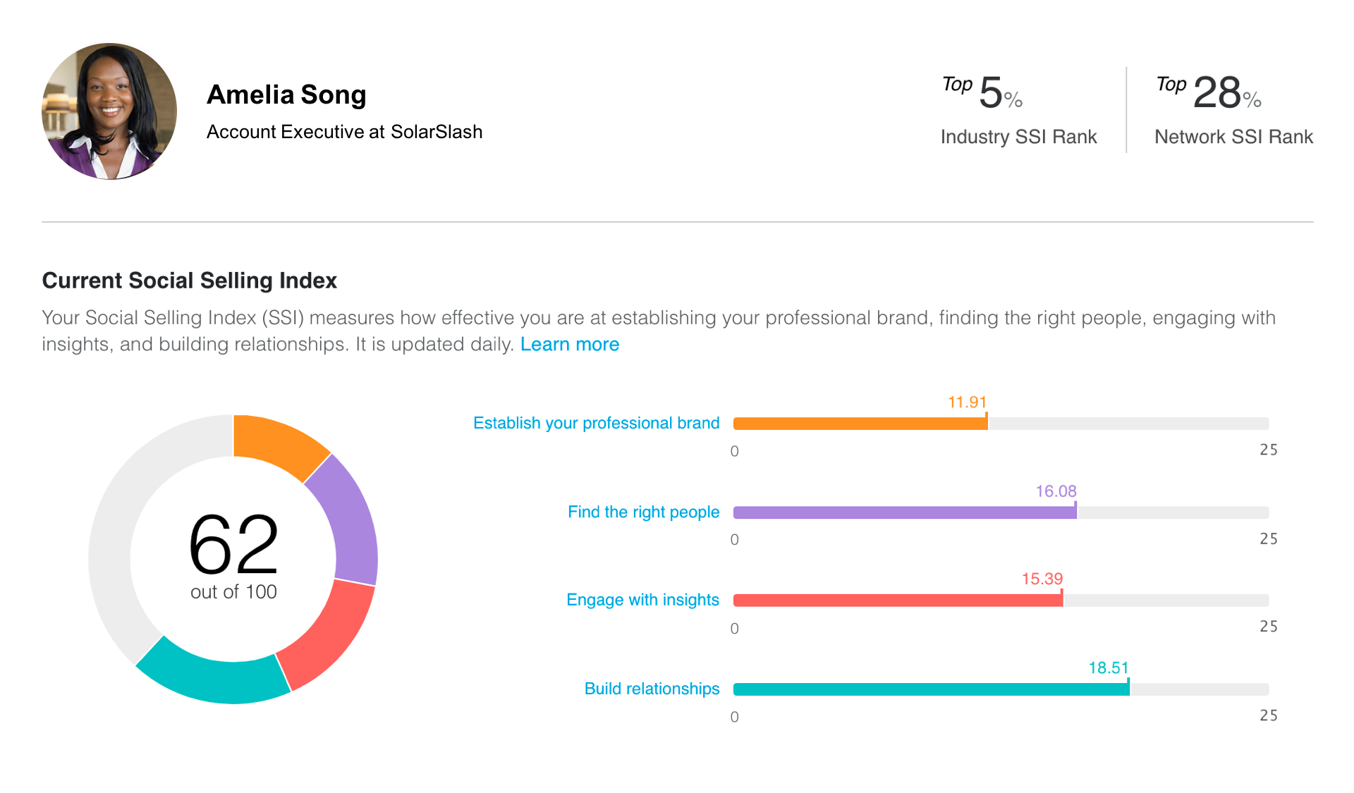 Social Selling Index (SSI) is a metric that measures how well your proficiency level is for social selling on LinkedIn.